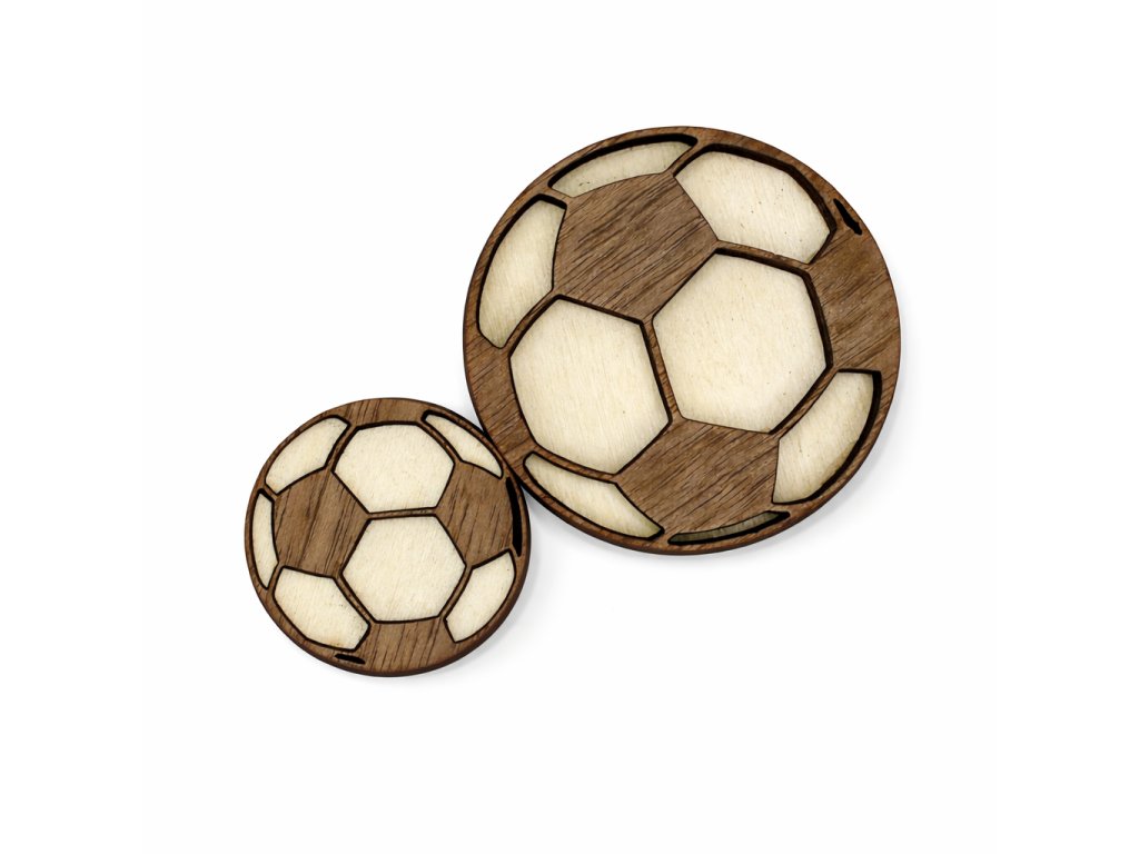 Překližkové magnetky ve tvaru fotbalových míčů jsou vyrobeny z vlašského ořechu a lípy a zaujmou dvoubarevným vrstveným provedením. Každý kus má lehce odlišnou kresbu dřeva, díky čemuž je originál.