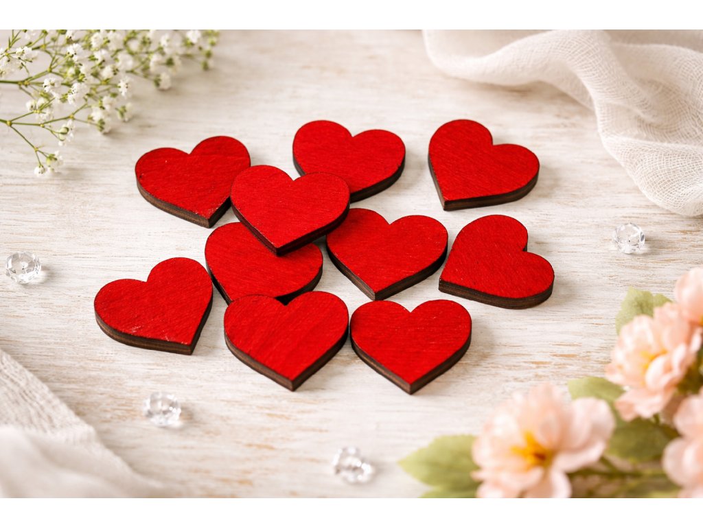 Romantické magnetky z 3mm překližky ve tvaru srdíček.