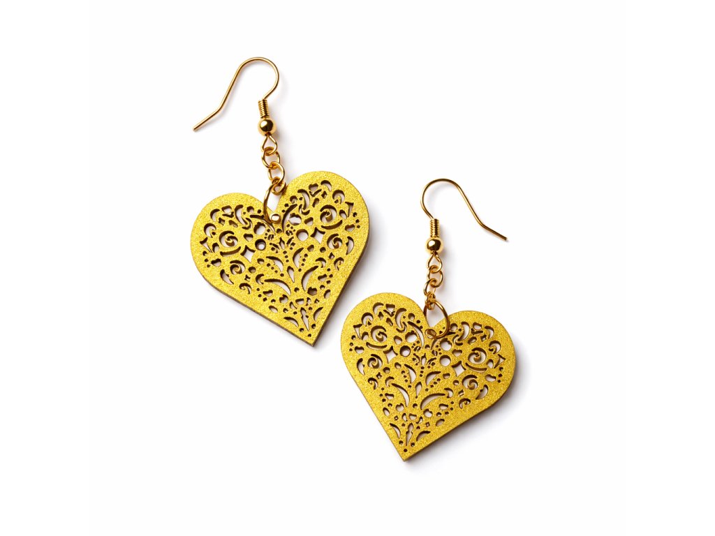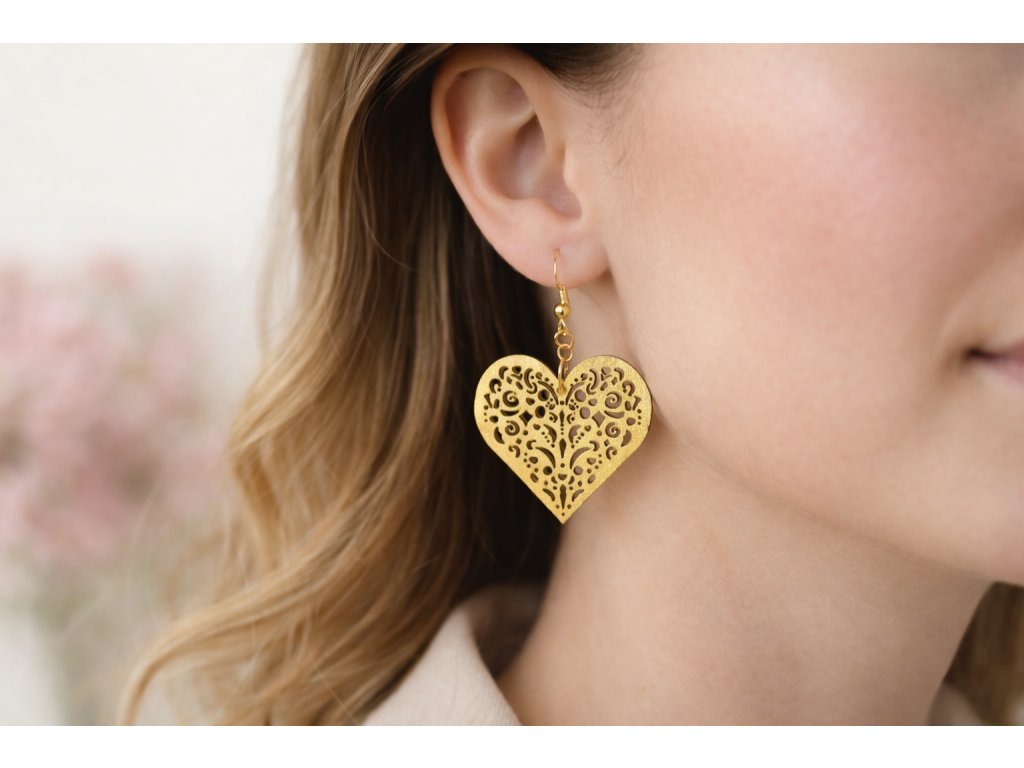 Tyto náušnice ve tvaru srdce jsou vytvořené s důrazem na detail a jemnost. Dekorativní výřez dodává náušnicím lehkost a vzdušnost, zatímco zlatý nebo stříbrný prvek působí elegantně a decentně.