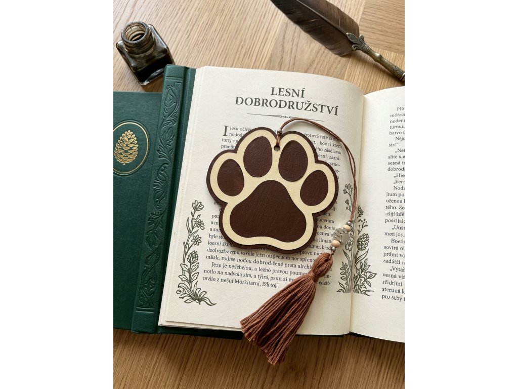Záložka z lipové překližky ve tvaru tlapky s vrstveným vzorem a hebkou třásní. Malá radost pro každého velkého milovníka knih.